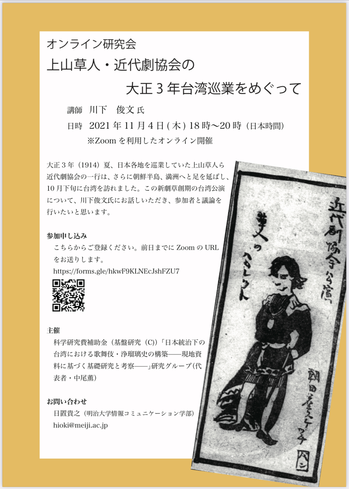 オンライン研究会「上山草人・近代劇協会の大正3年台湾巡業をめぐって」