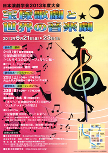 そして、音楽劇研究の充実は、内外を問わず近年の大きな流れといえます。音楽劇を深く考えることによって、台詞劇や舞踊劇を照射することもできるはずです。もちろん自由論題の発表も歓迎します。発表募集の詳細は、次の機会にお知らせします。時間をかけて多彩な研究やパネルを御準備下さいますよう、心よりお願い申し上げます。